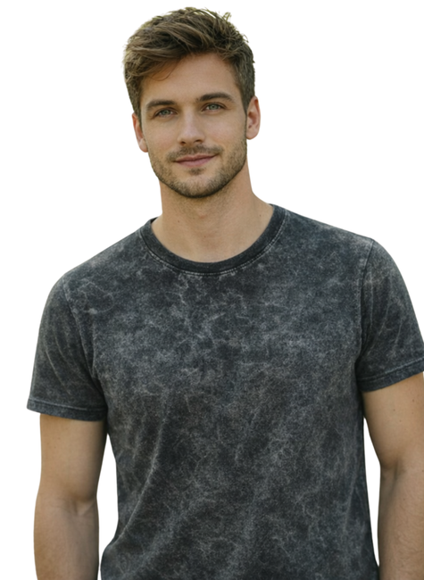 Processo de lavagem especial que cria efeito marmorizado sem desgastar o tecido, garantindo um visual moderno, urbano e cheio de identidade. Nenhuma peça é igual à outra.