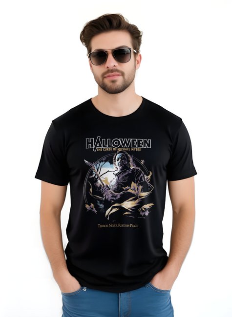 Design Impactante: Estampa que evoca a atmosfera sombria de Halloween, refletindo a intensidade e o suspense do filme.