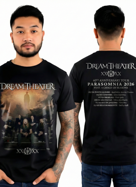 Mostre seu amor pelo metal progressivo com a camiseta do lendário Dream Theater – Parasomnia Tour Brasil 2026 (40th Anniversary)!
